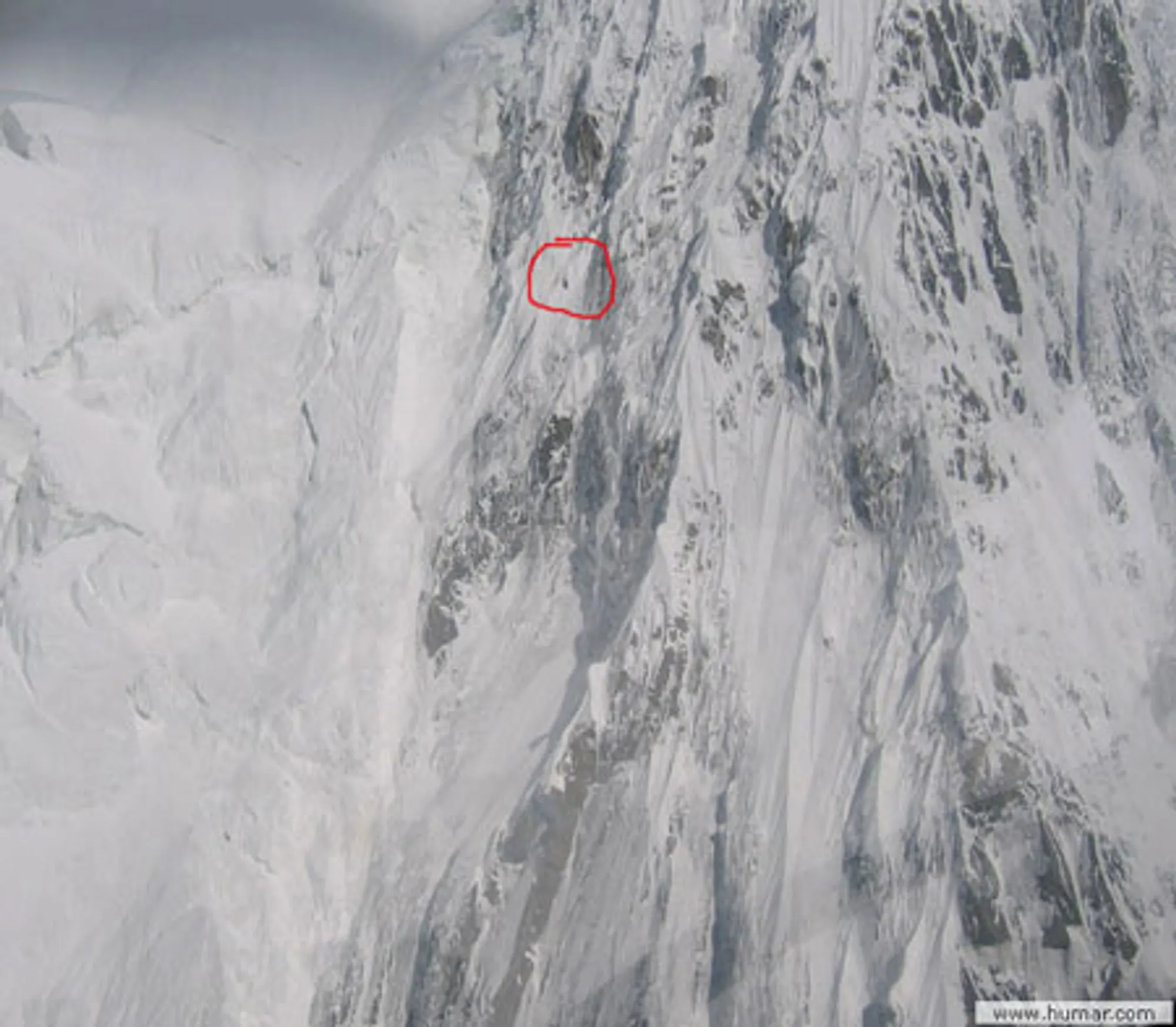 울타르 사르에 사람이 등반하는 모습(붉은색 원)